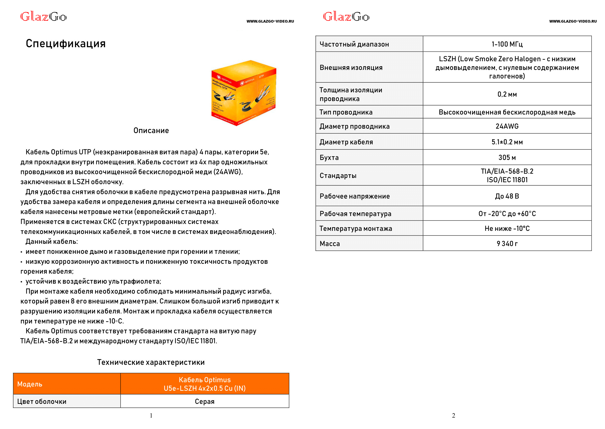 Optimus U5e-LSZH 4x2x0.5 Cu (IN) – это кабель категории 5e (U5e), предназначенный для передачи данных в сетях Ethernet. Он обладает рядом характеристик, которые делают его подходящим для различных применений, особенно в условиях, где важна безопасность и экологичность.