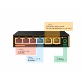 - HiPoE до 60 Вт: Каждый из 4 портов с поддержкой HiPoE может обеспечивать до 60 Вт мощности, что позволяет подключать самые требовательные устройства.