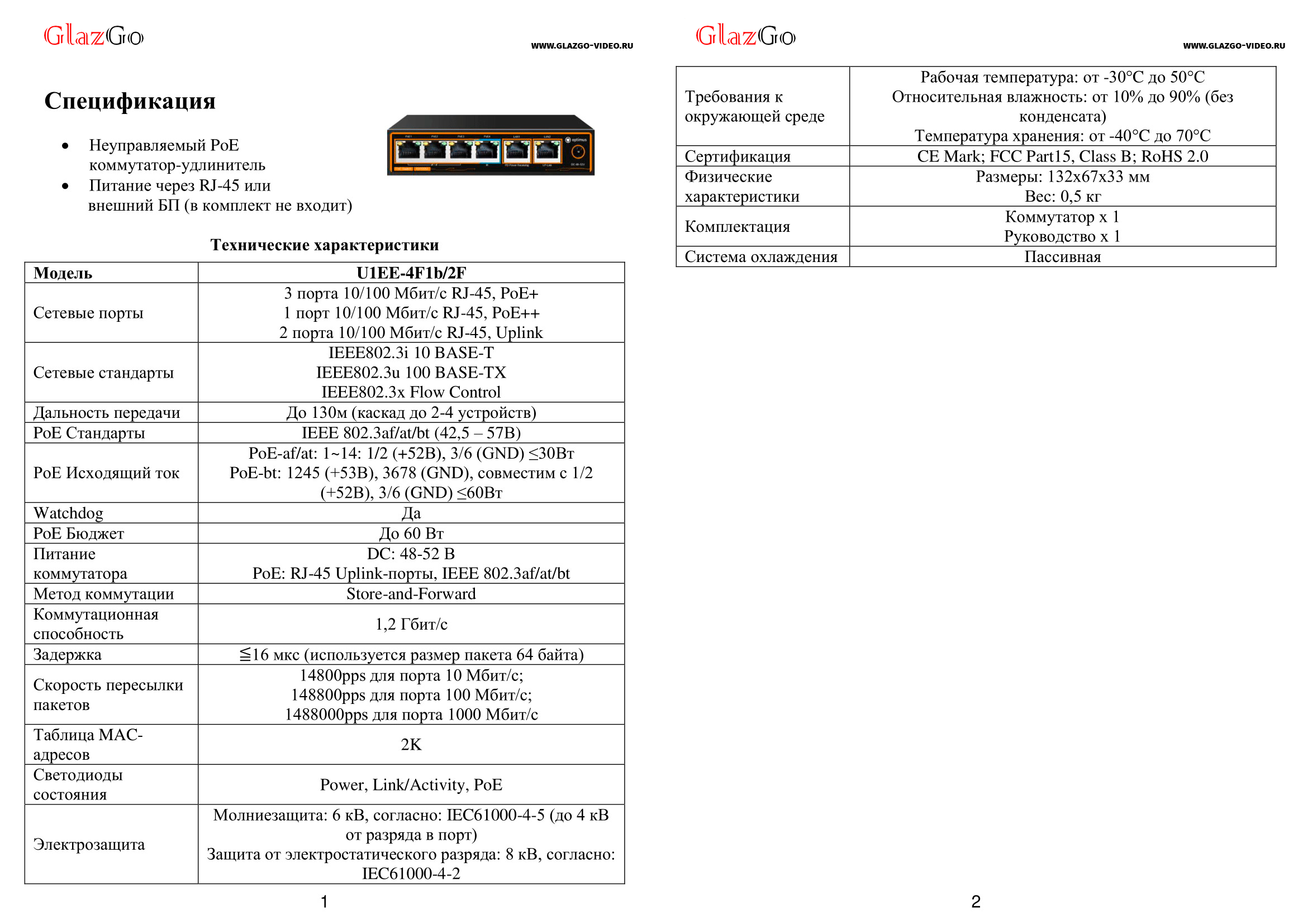 Купить коммутатор Optimus U1EE-4F1b/2F с питанием от HiPoE до 60Вт с артикулом В0000019921 в Москве без посредников, уточнить оптовую цену можно по почте: glazgo-video@mail.ru