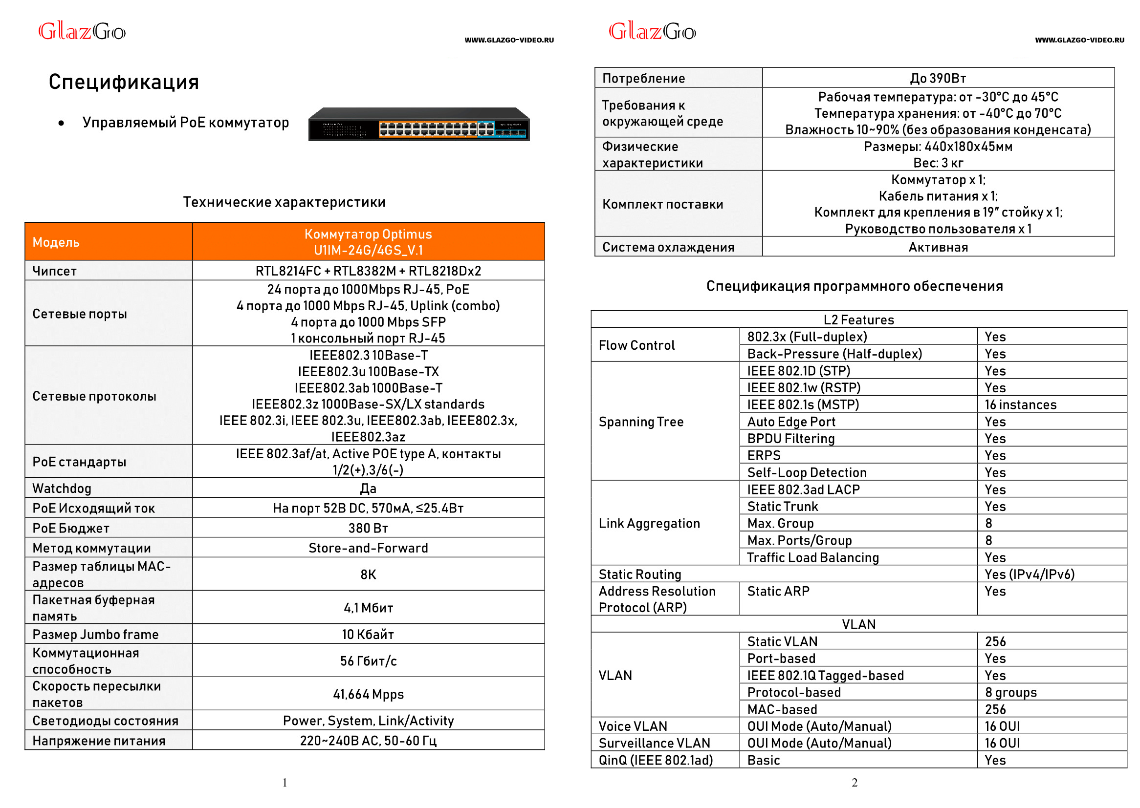 Краткое описание коммутатора для видеонаблюдения Optimus U1IM-24G/4GS_V.1