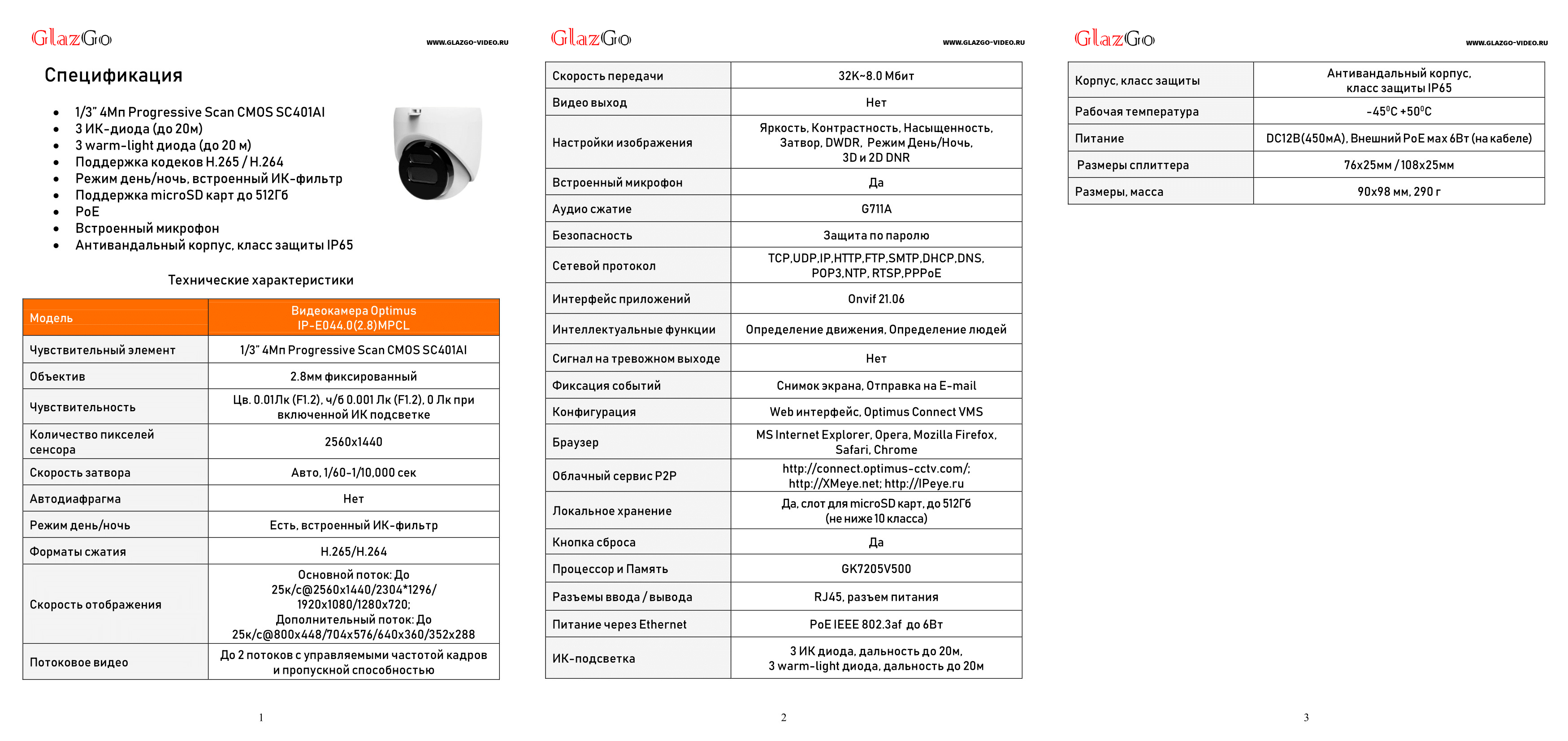 Краткое описание видеокамеры Optimus IP-E044.0(2.8)MPCL