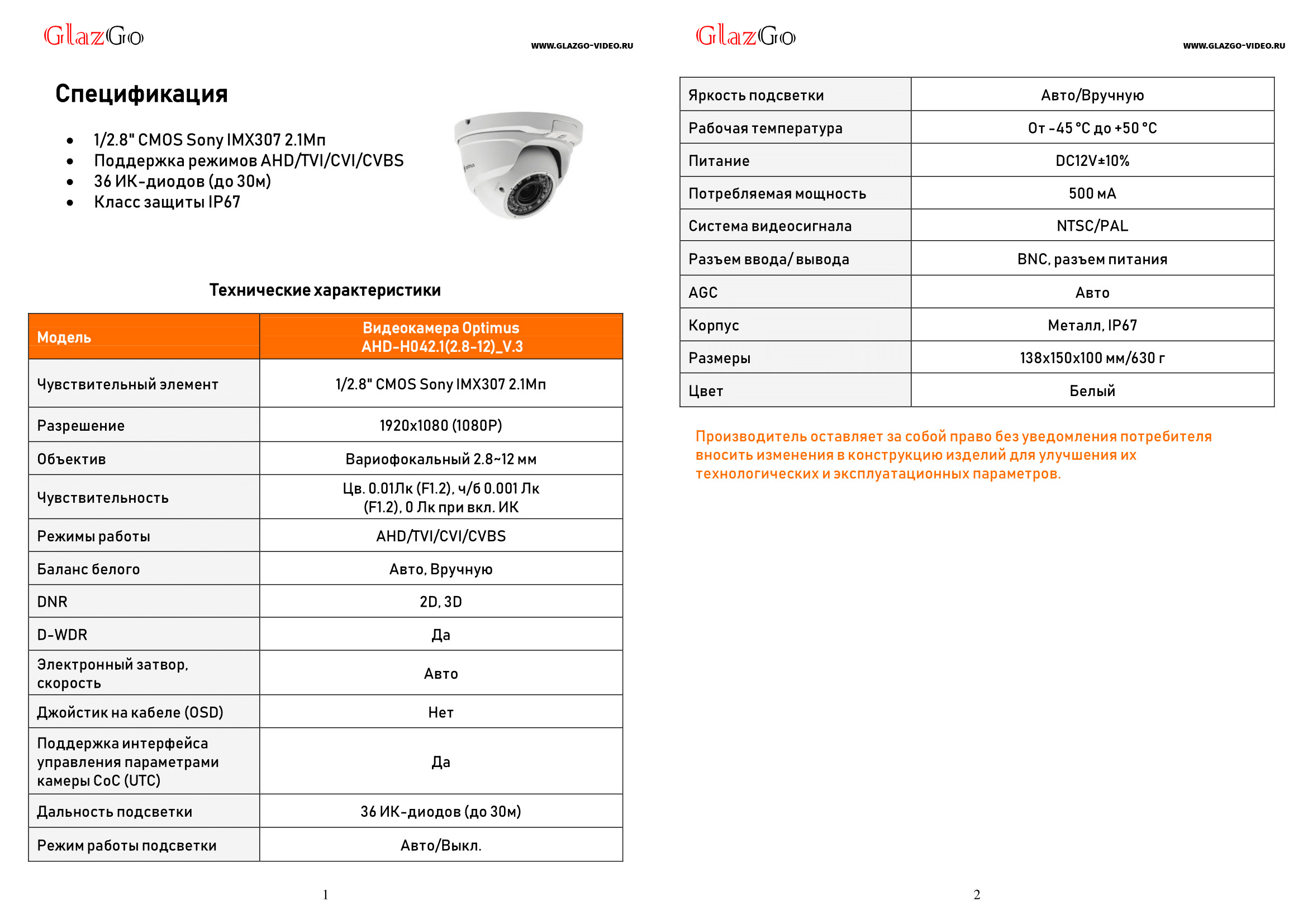 Краткое описание видеокамеры Optimus AHD-H042.1(2.8-12)_V.3