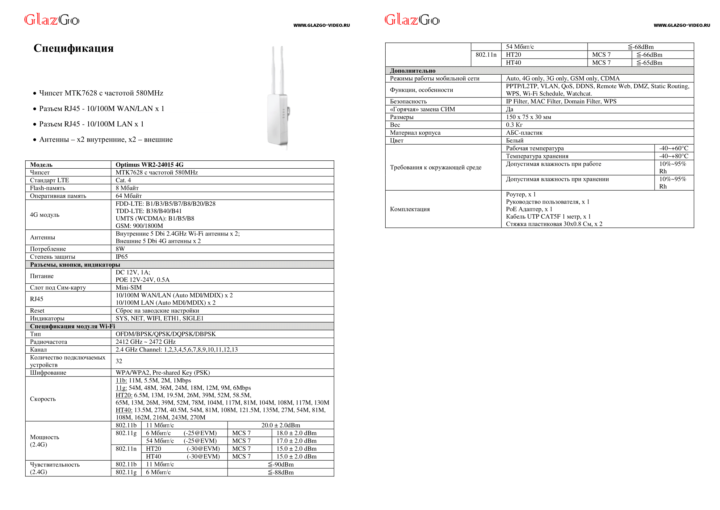 Краткое описание роутера для видеонаблюдения Optimus WR2-24015 4G